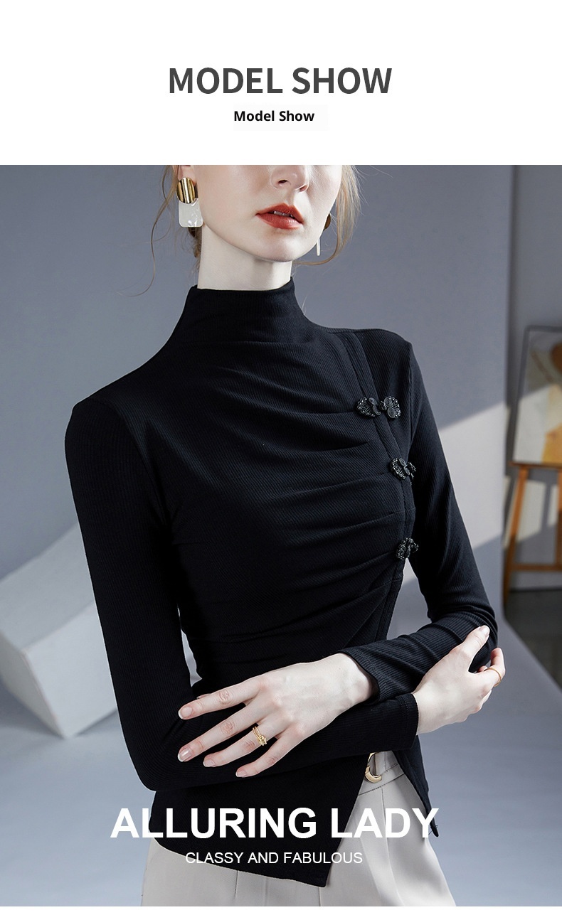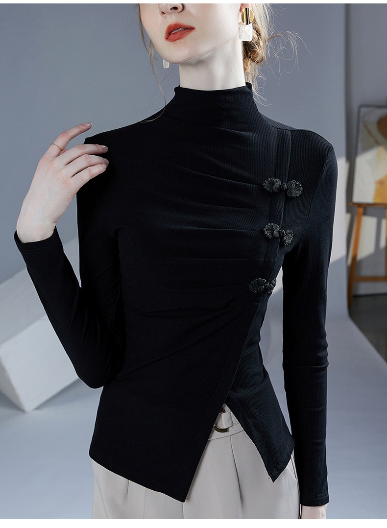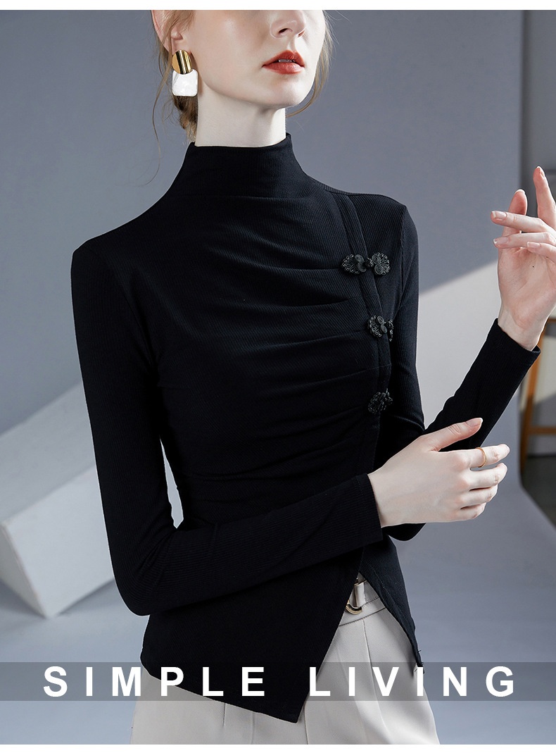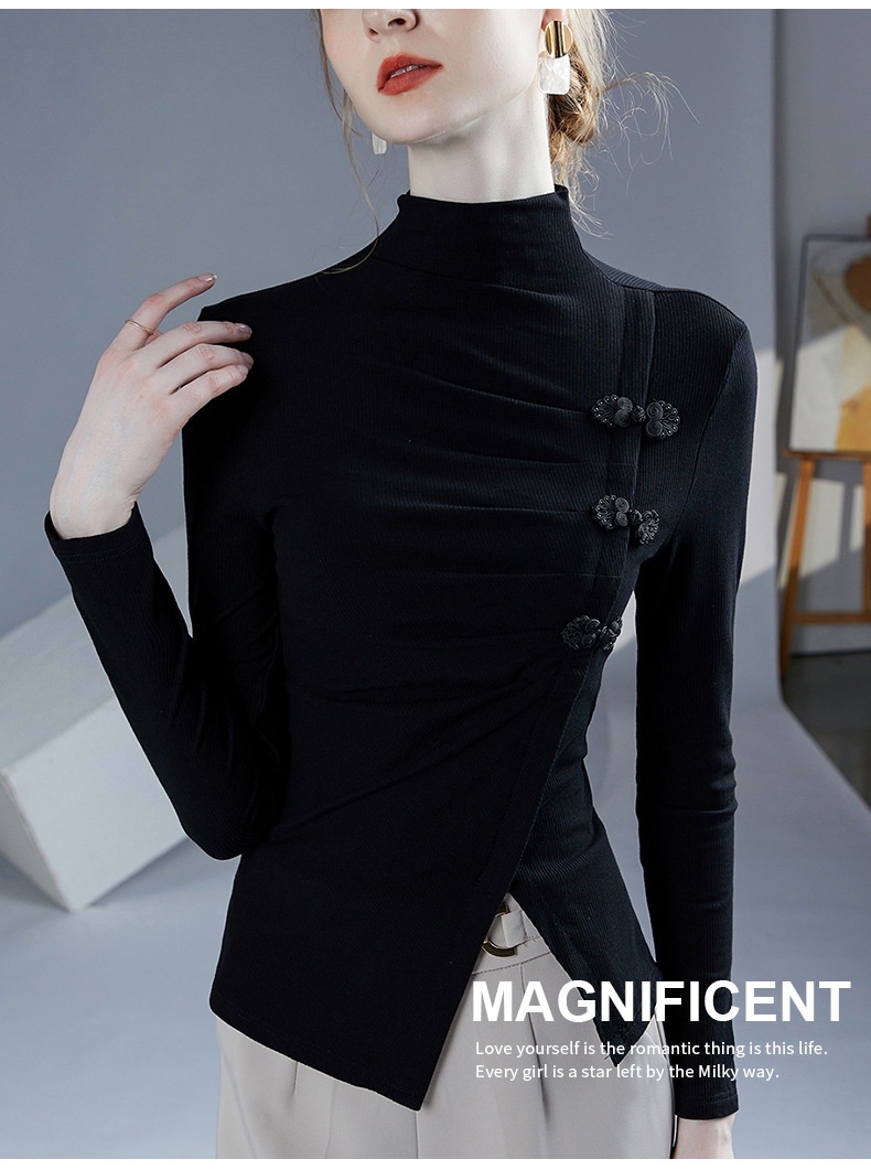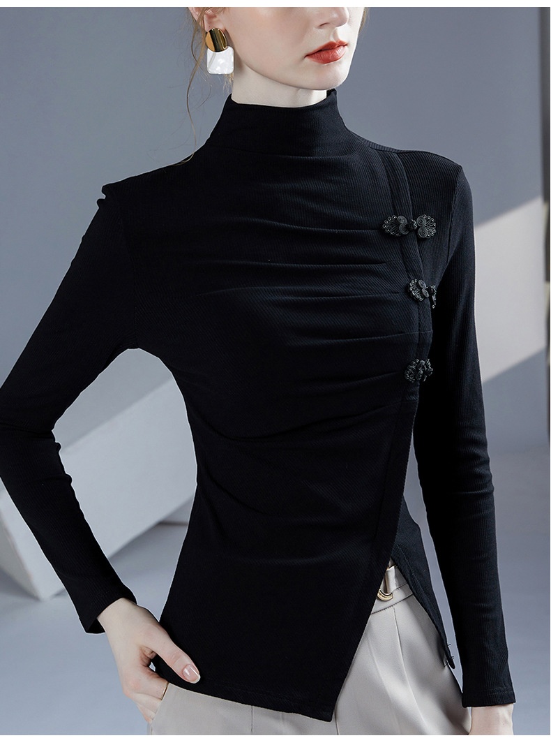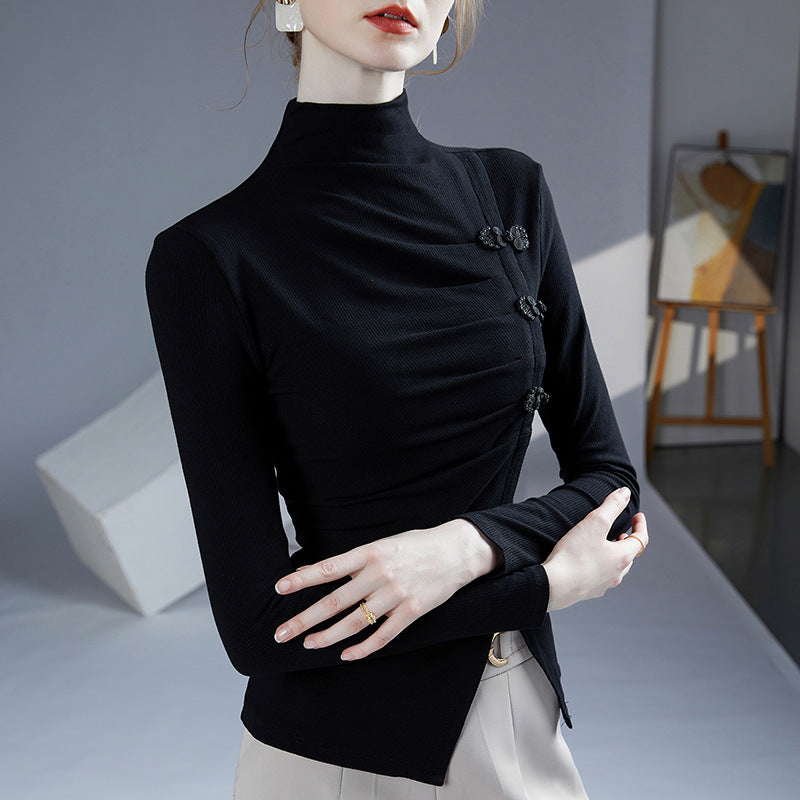 Autumn New Retro Frog Long Sleeve Small Shirt Temperament Split Pleated Inner Wear Outer Wear Women's Top