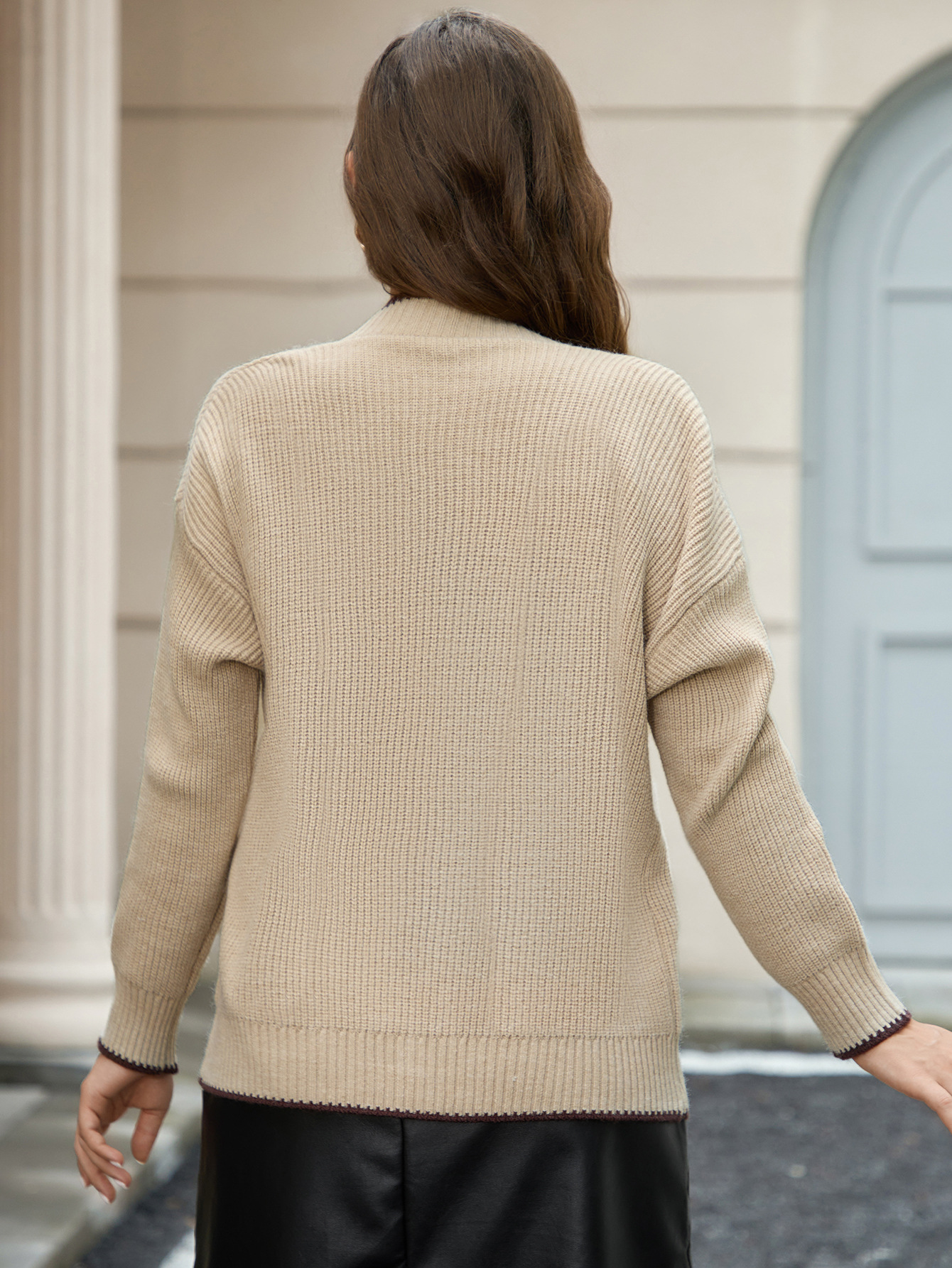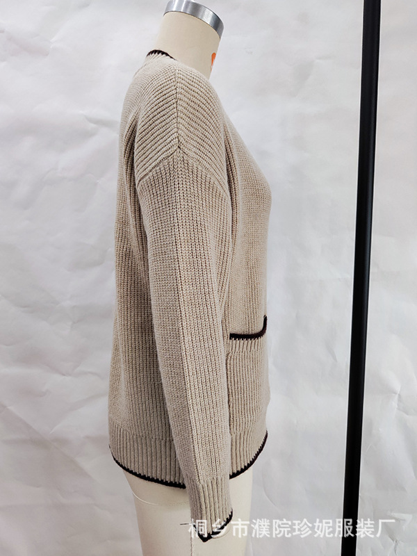 Contrast Color Boud Edage Belt Pocket Casual Jacket