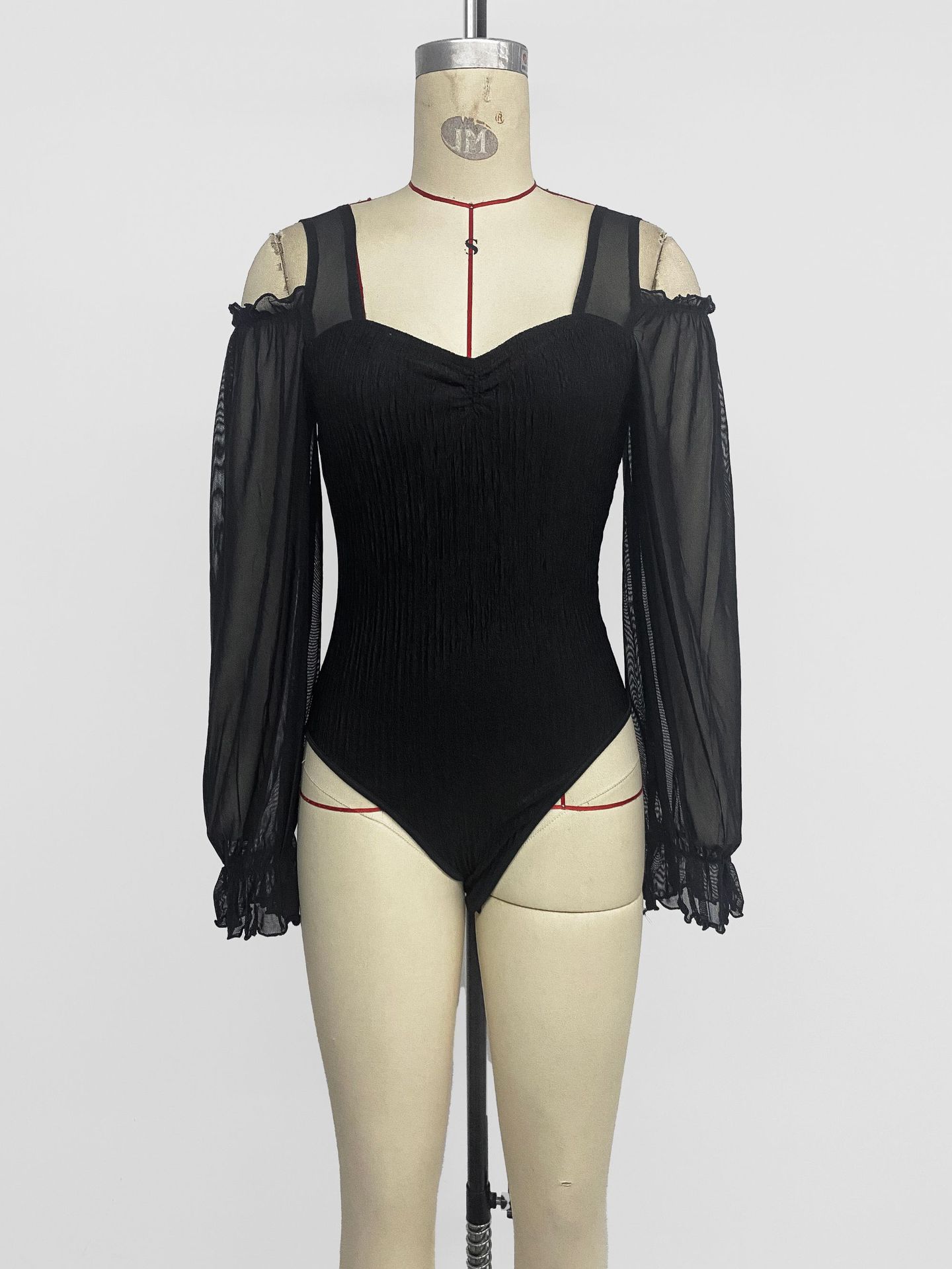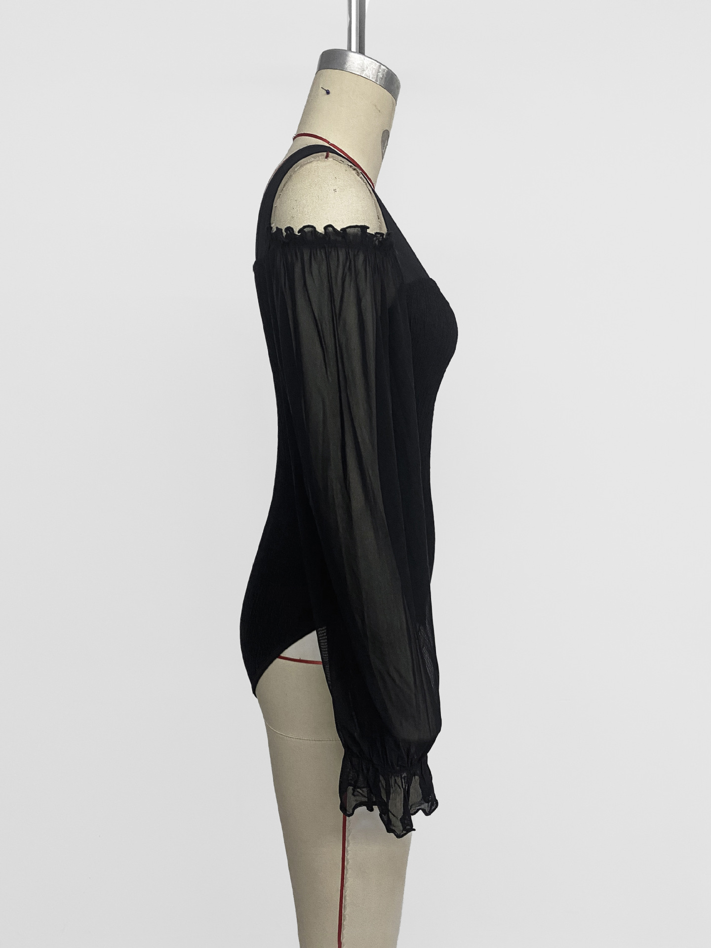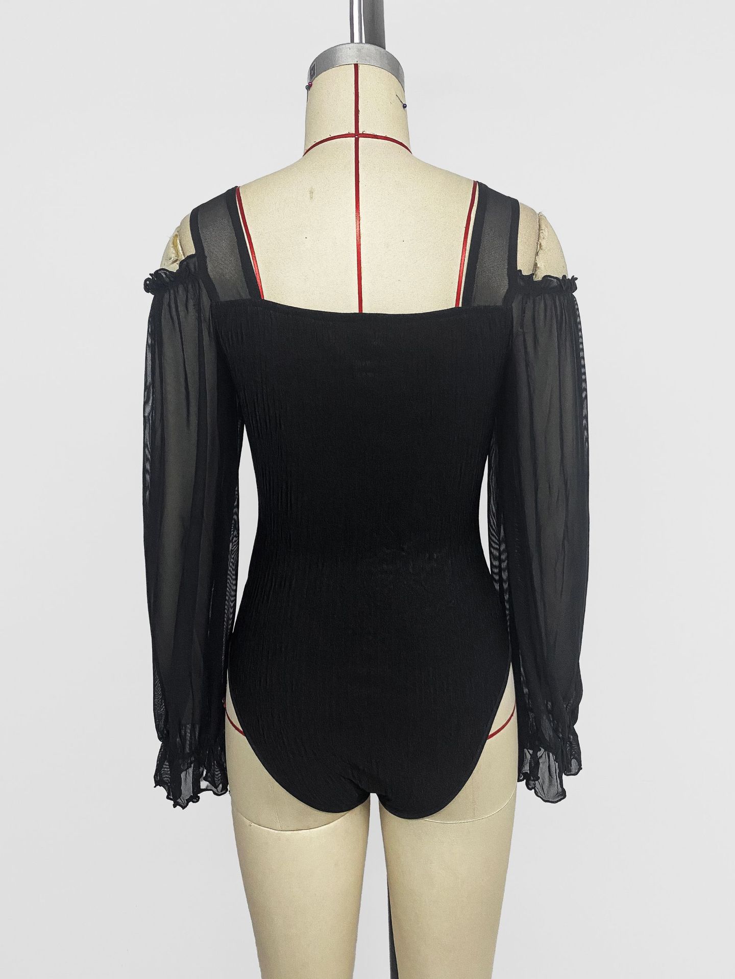 Design Sense Backless Gauzy Hollow-out Long Sleeve Waist-tight Jumpsuit For Women Autumn