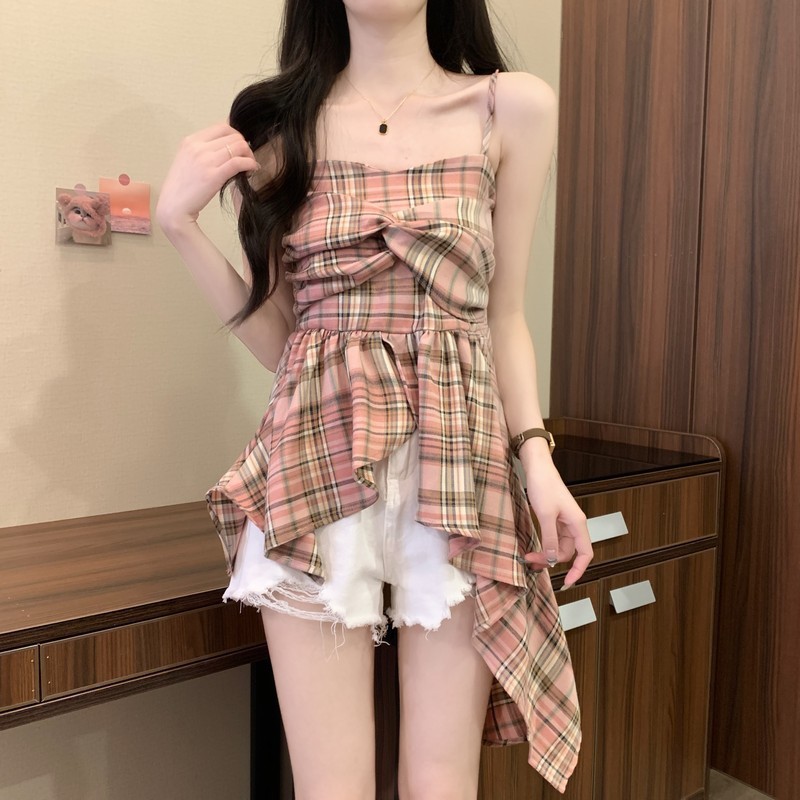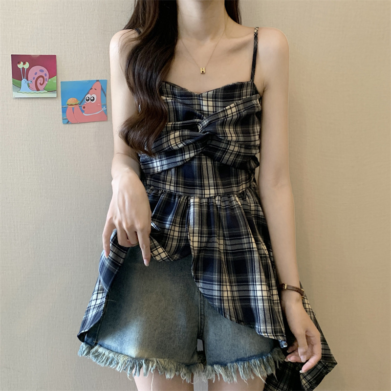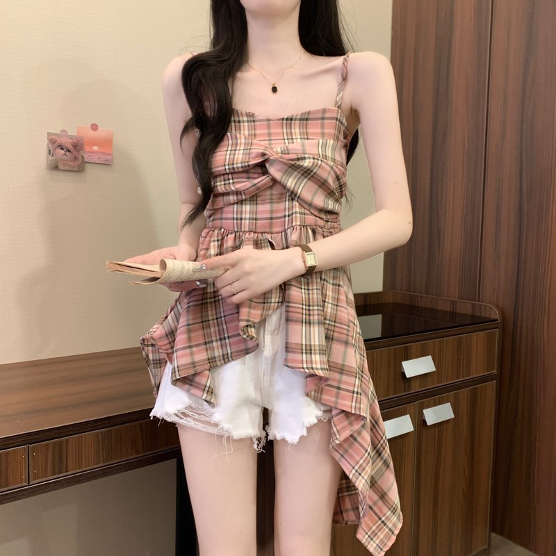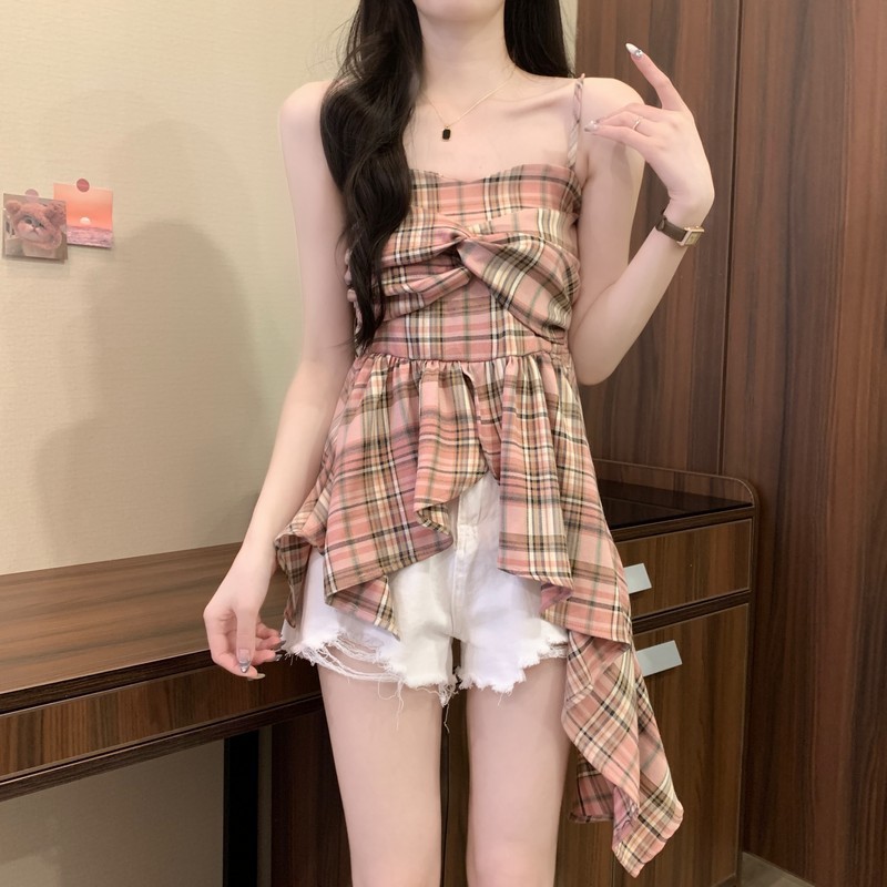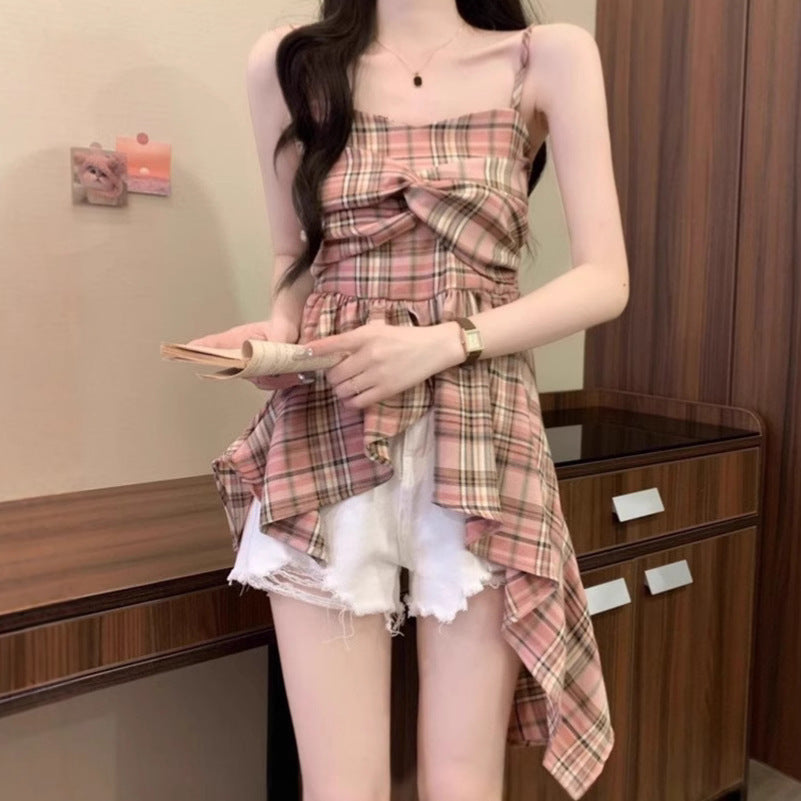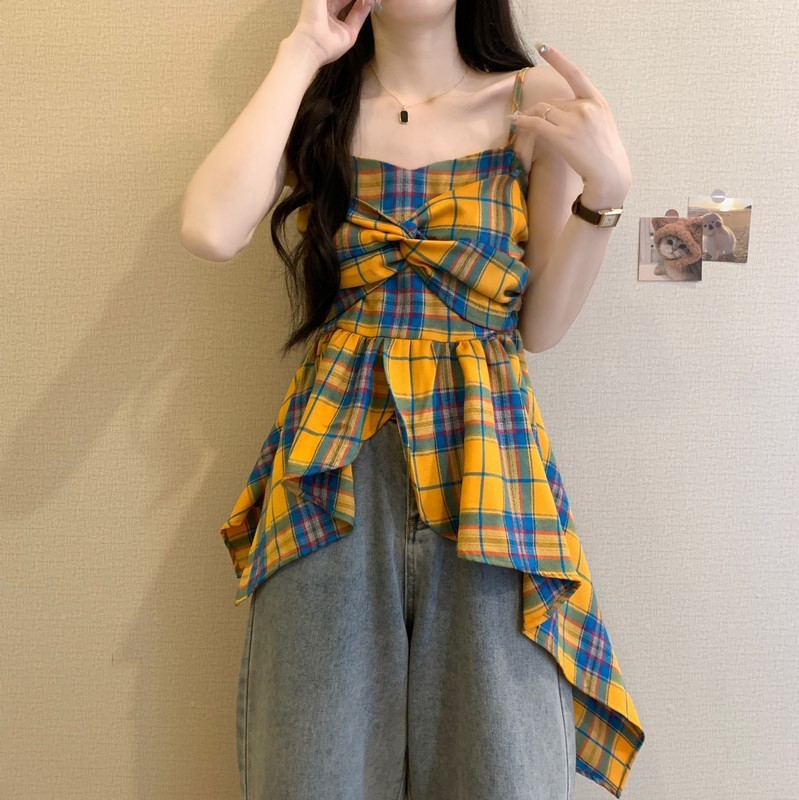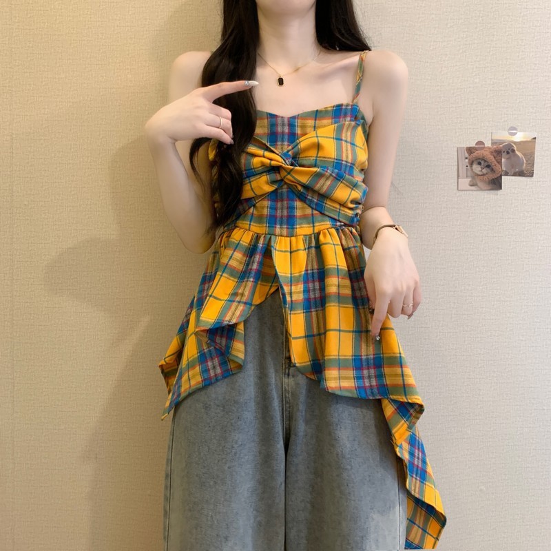Dopamine Contrast Color Plaid Irregular Spaghetti-strap Vest