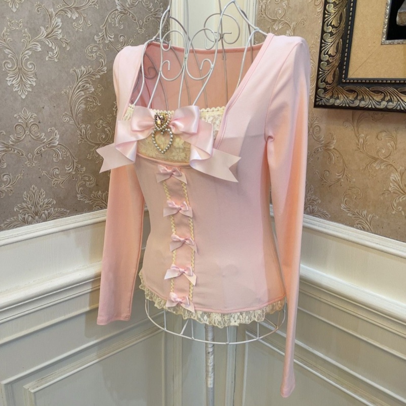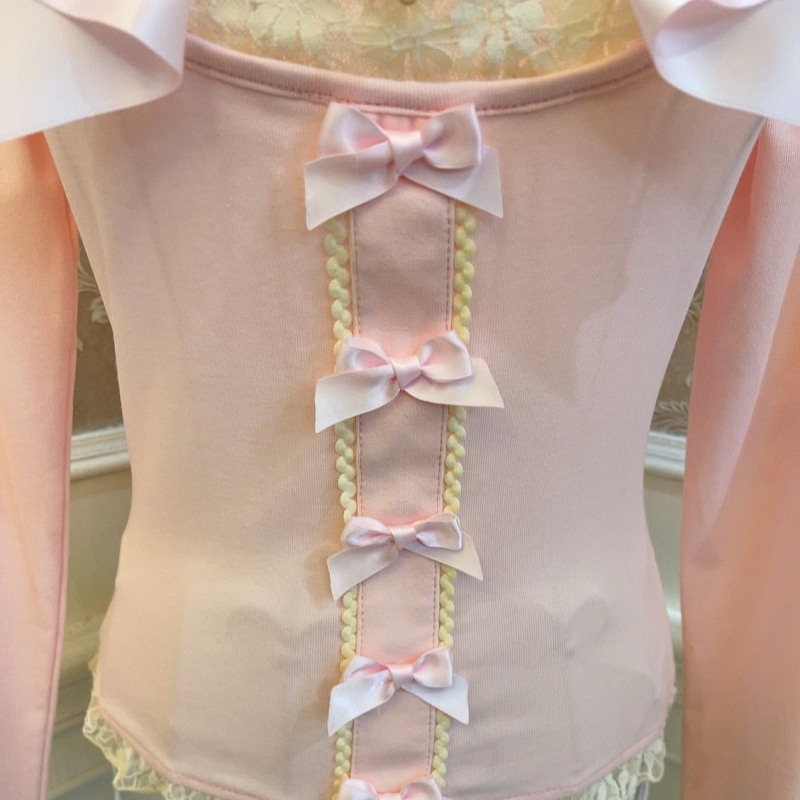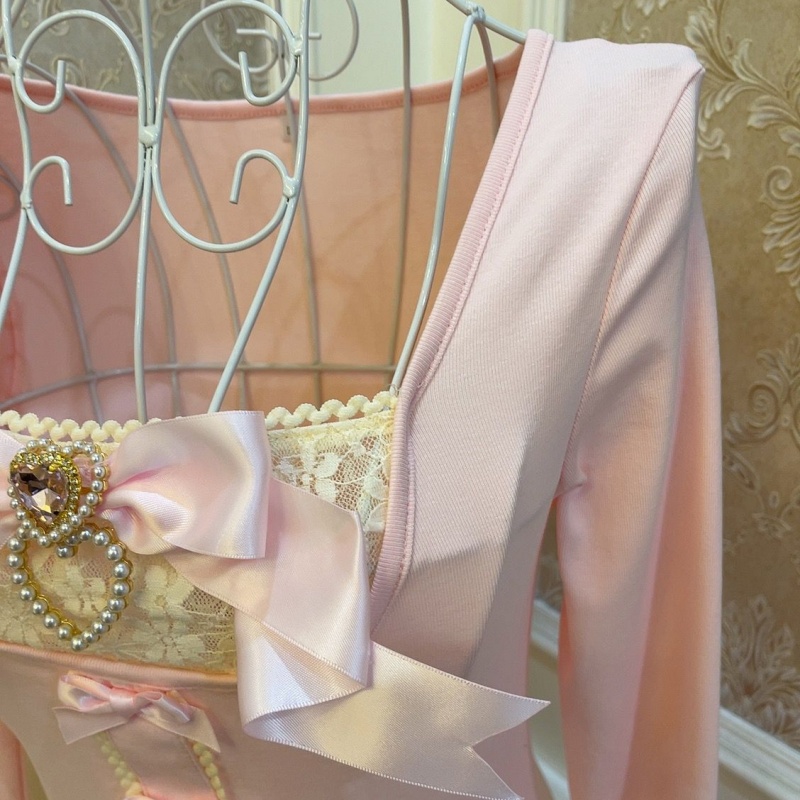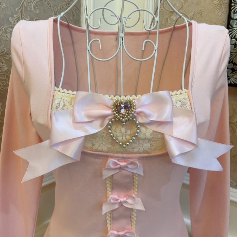 Elegant Ballet Style Princess Bowknot Pearl Heart Slimming Short Top