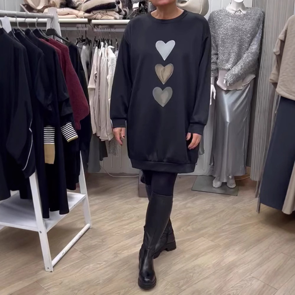 Fashionable All-match Round Neck Long Sleeve Casual Love Sweater