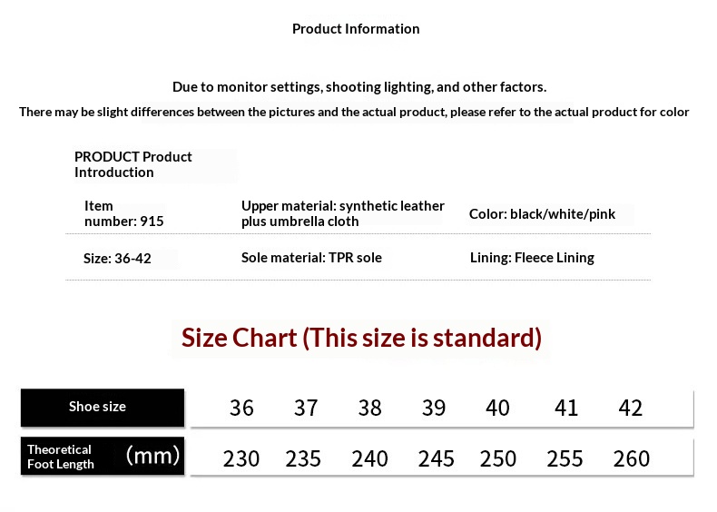 Size: 36, 37, 38, 39, 40, 41, 42