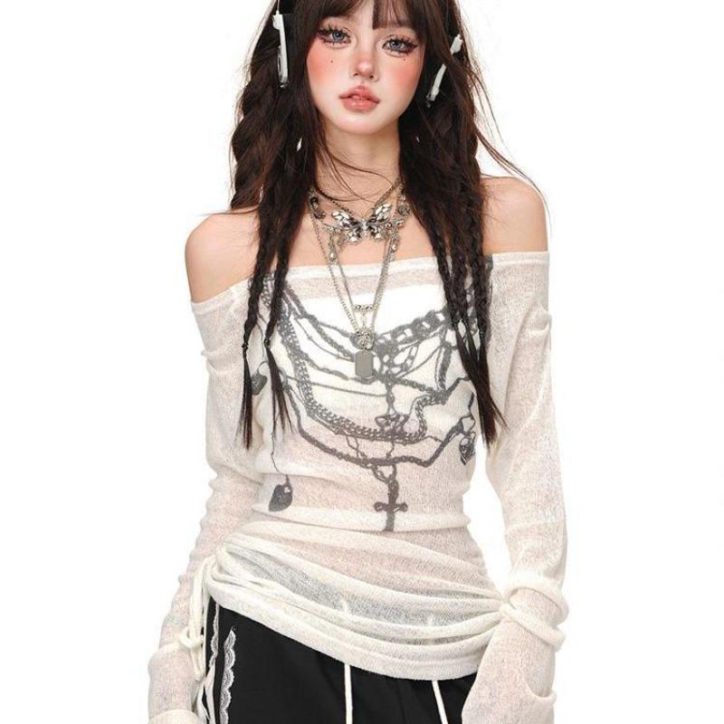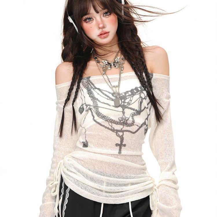Girl Style Floral-print Off-shoulder Long Sleeve