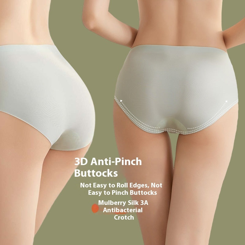 Ice Silk Underwear Women's Traceless Mid Waist Silk Antibacterial Girl Student Pure Cotton