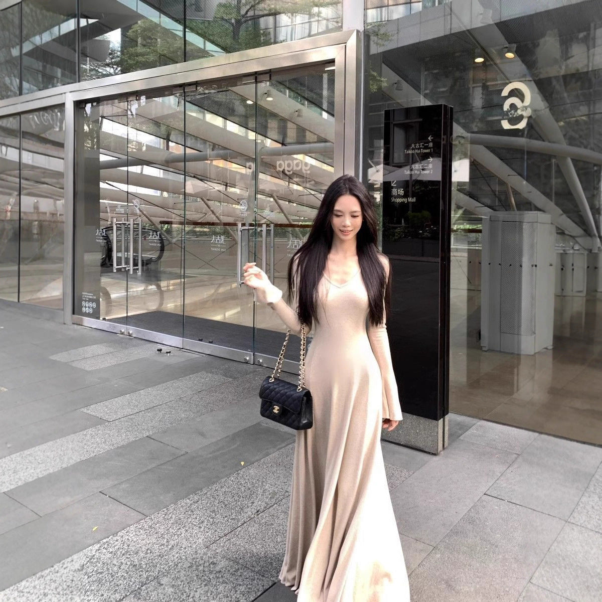 Knitted Women's Autumn And Winter Design Temperament Waist-controlled Dress