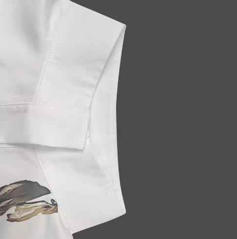 Long Sleeve And Loose Print Top Stand Collar Shirt