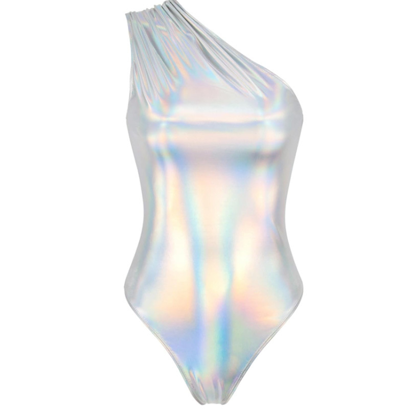 Oblique Shoulder Hot Girl Jumpsuit Metallic Glossy Sexy Party