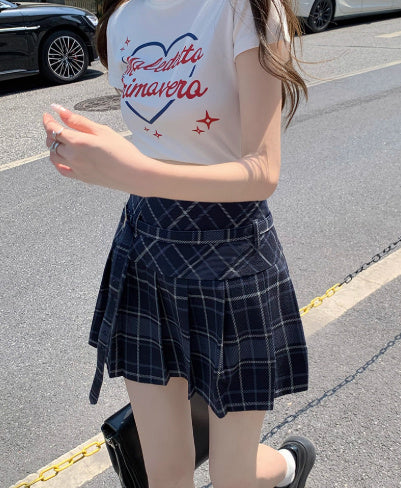 Retro Large Size High Waist College Style A- Line Pleated Skirt