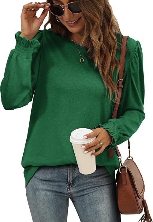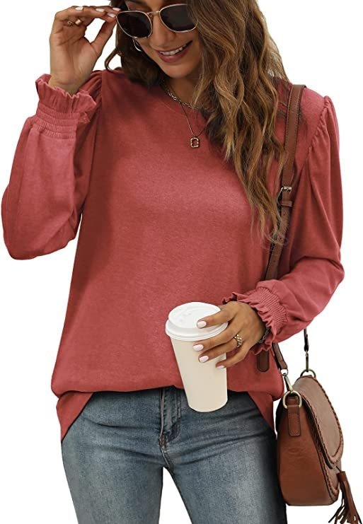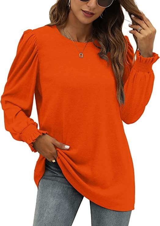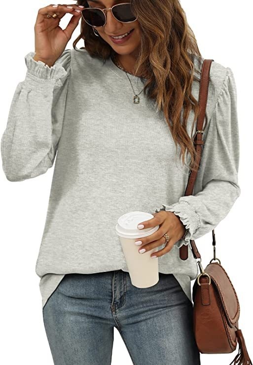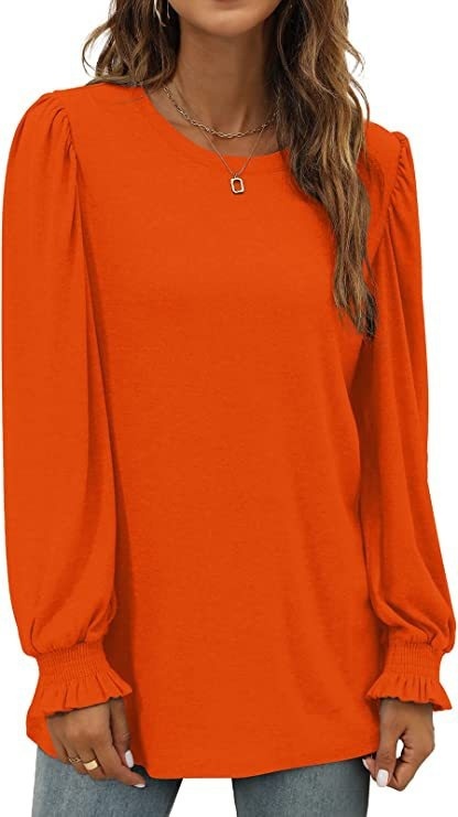 Round Neck Puff Sleeve Long Women's Clothing Top