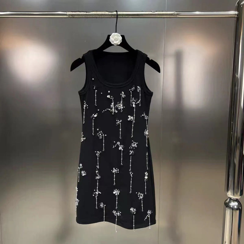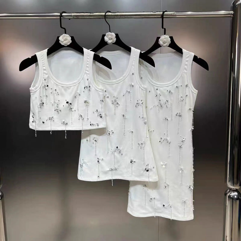 Scoop Sleeveless Diamond Nail Beads Sequins Heavy Industry Gold Style Vest