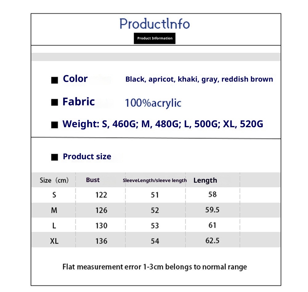 Color: black, khaki, gray, apricot, reddish brown, green, purple blue