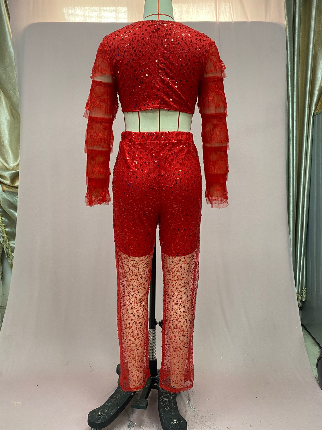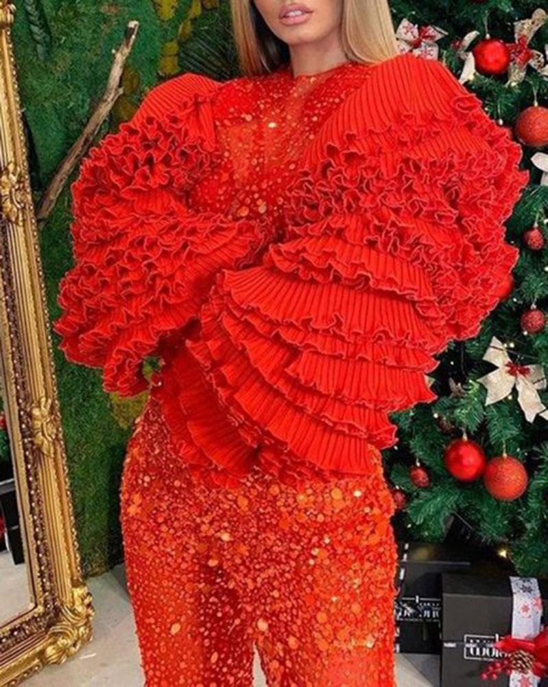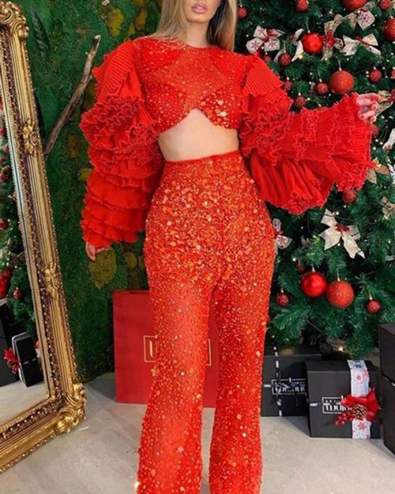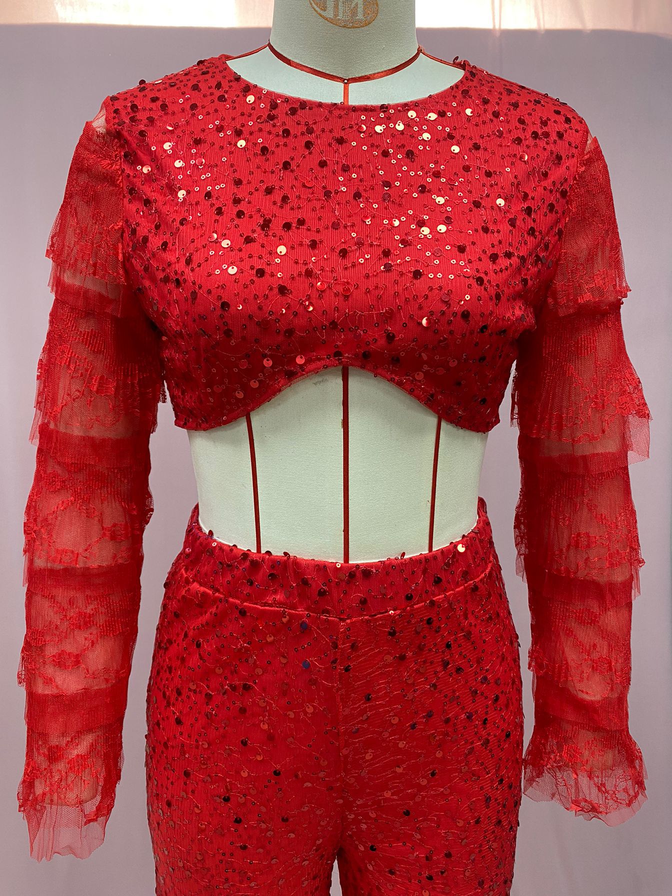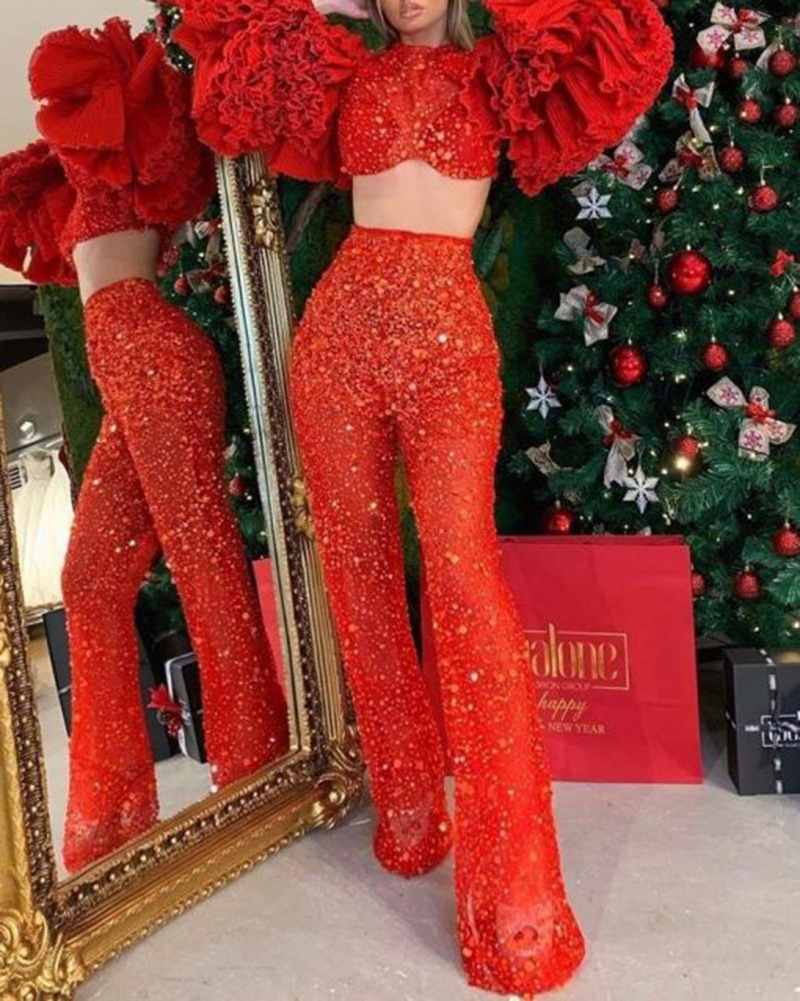 Women's Fashion Midriff-baring Long Sleeve Solid Color Suit