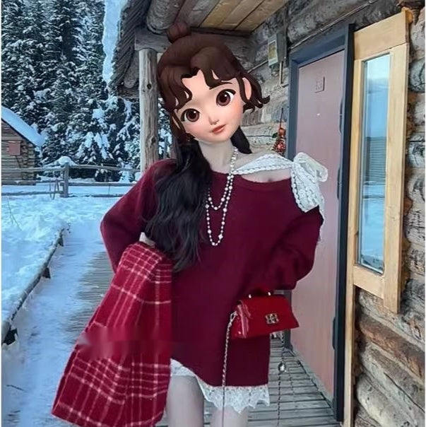 Women's Lace Bow Lace-up Shoulder Top
