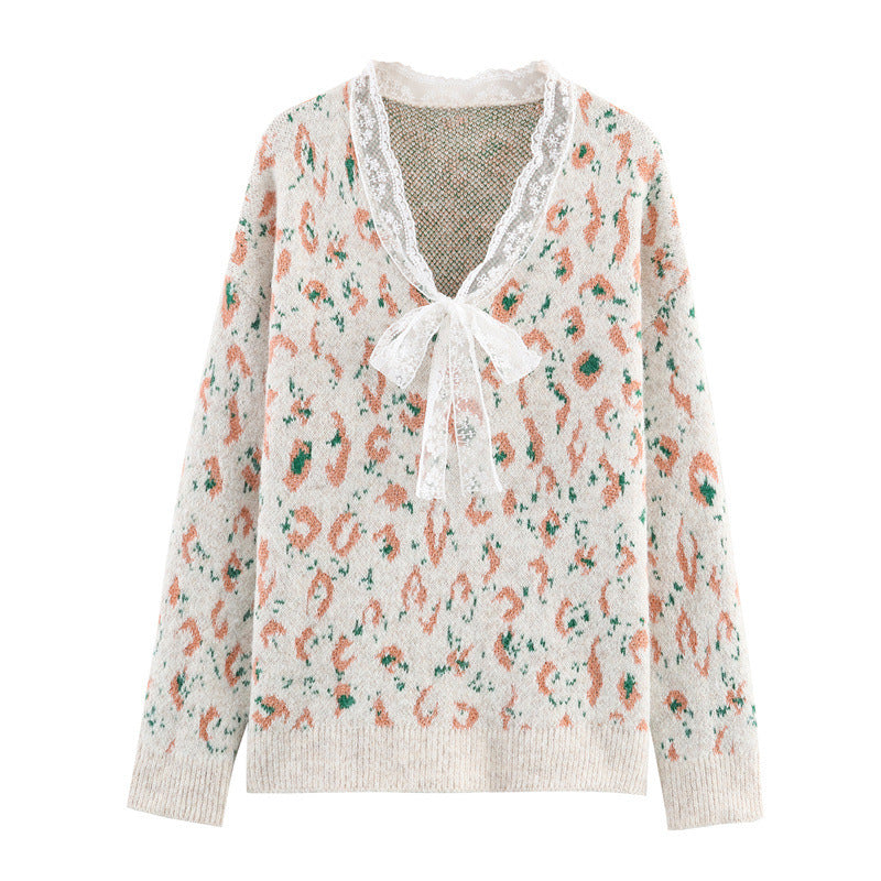 Women's Loose Ruffled Leopard Print Pullover Sweater
