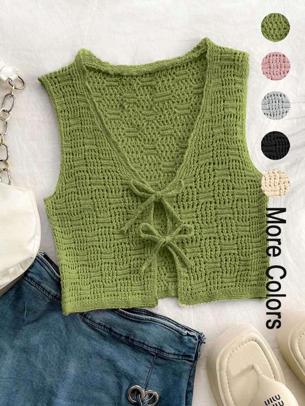 Women's Solid Color Tie Front Sweater Vest Casual Crochet