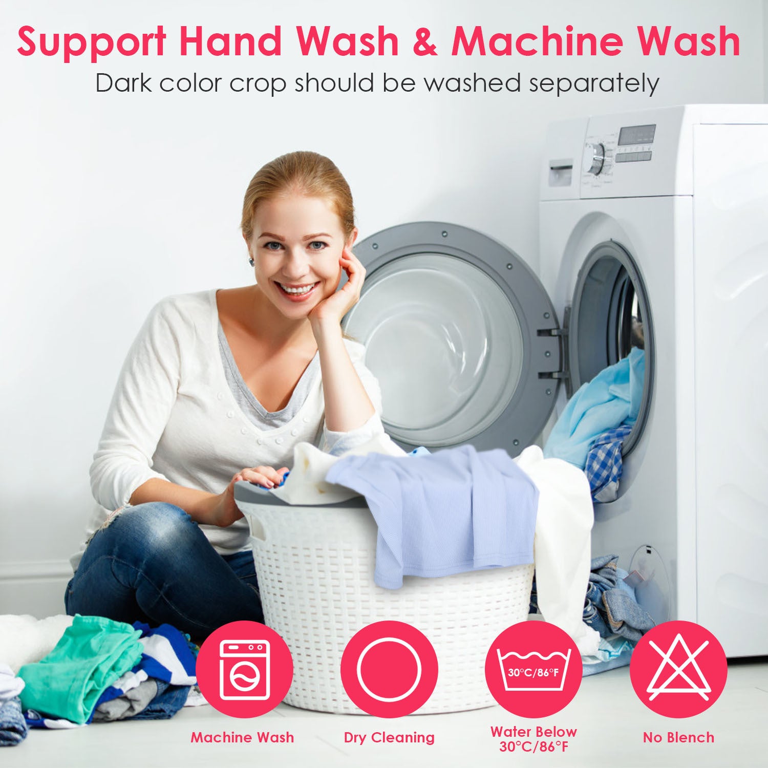 - *Machine & Hand Washing*: Support hand wash or machine wash,but please note that the water temperature must be kept below 30°C/86°F. It can be dried but not bleached. Dark color crop should be washed separately.
