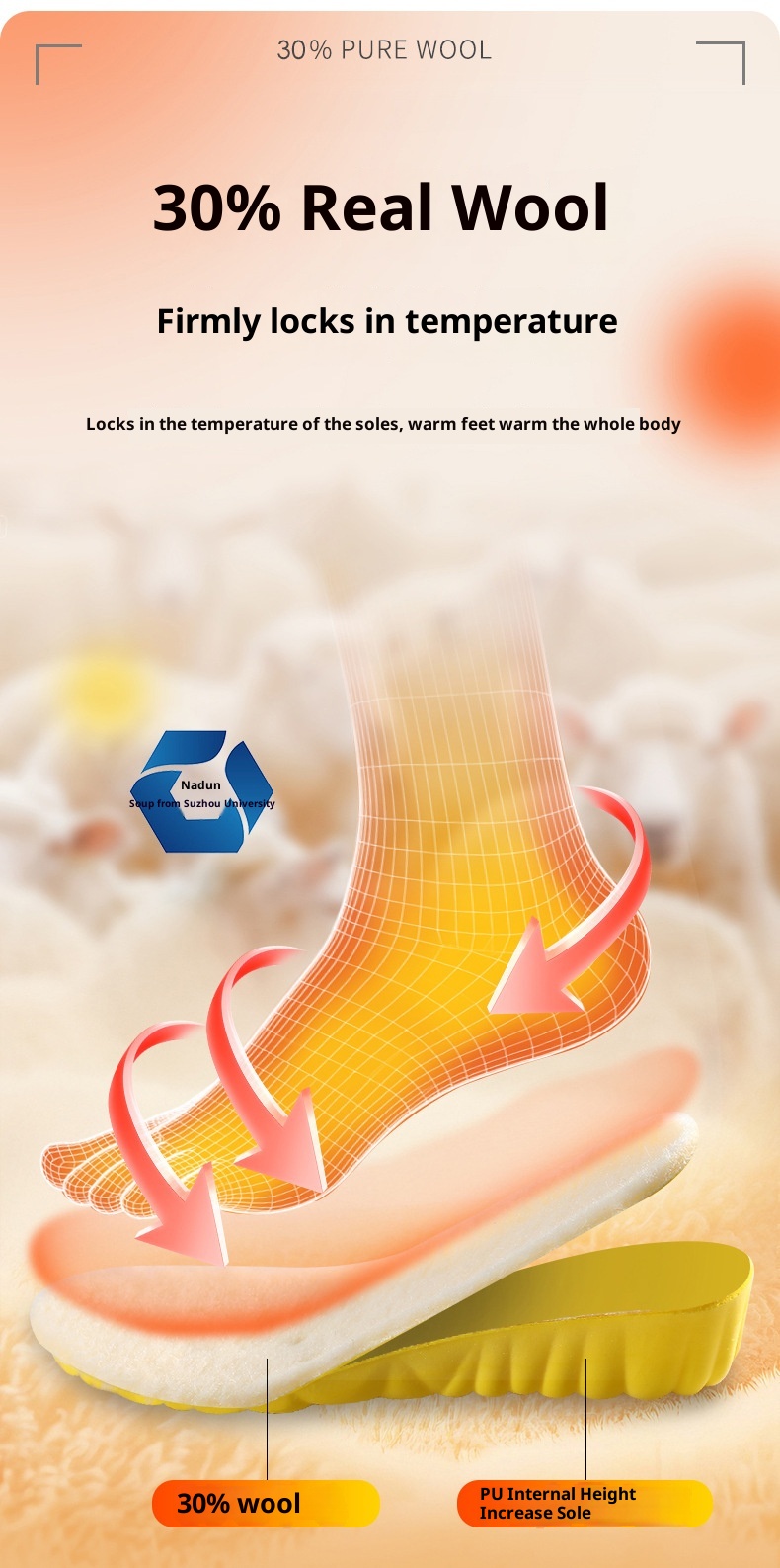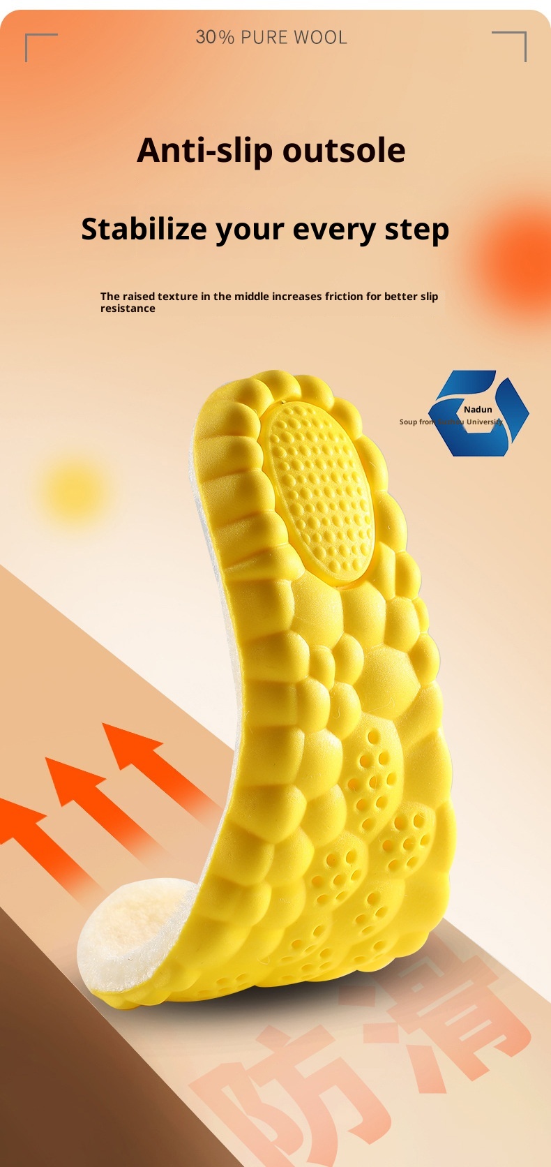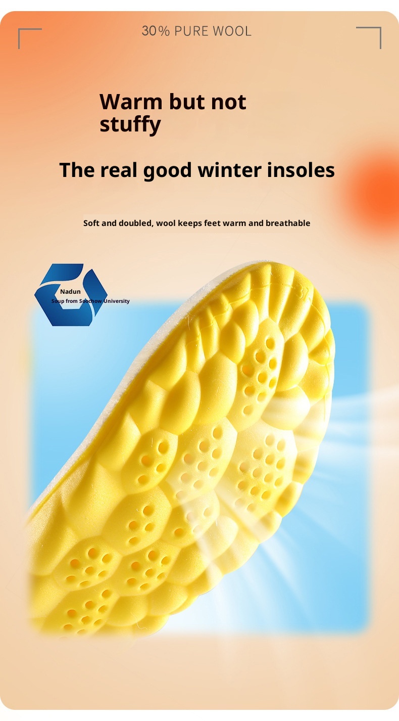 Breathable Sweat Absorbing Shock-absorbing Comfortable Soft Bottom Drooping Wool Insole