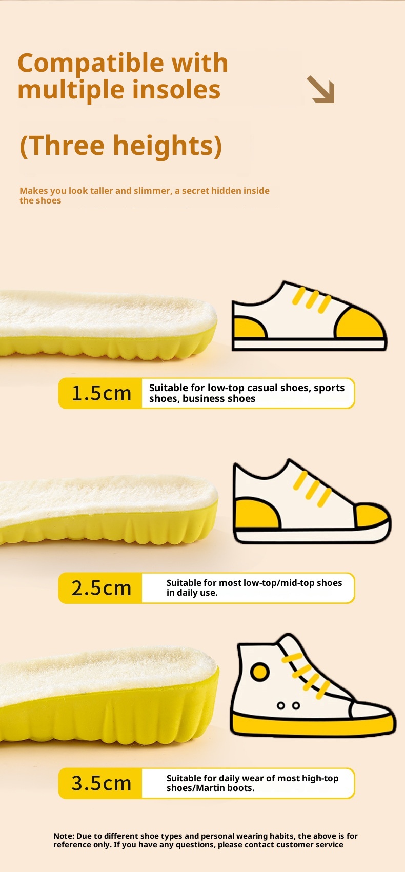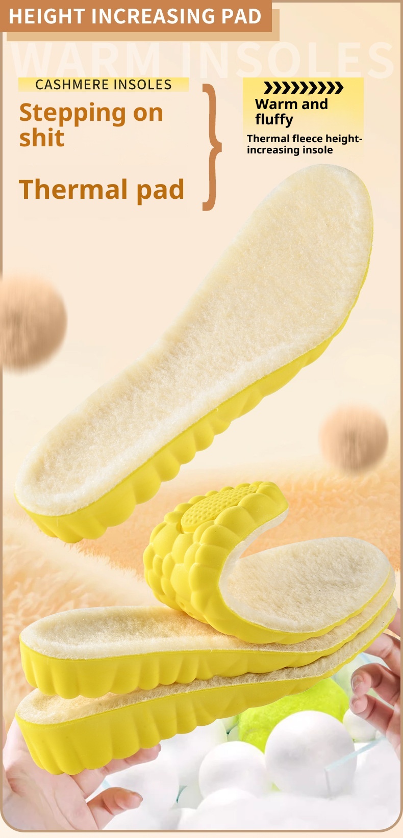 Color: 1.5cm wool cloud height increasing insole, 2.5cm wool cloud height increasing insole, 3.5cm wool cloud height increasing insole
