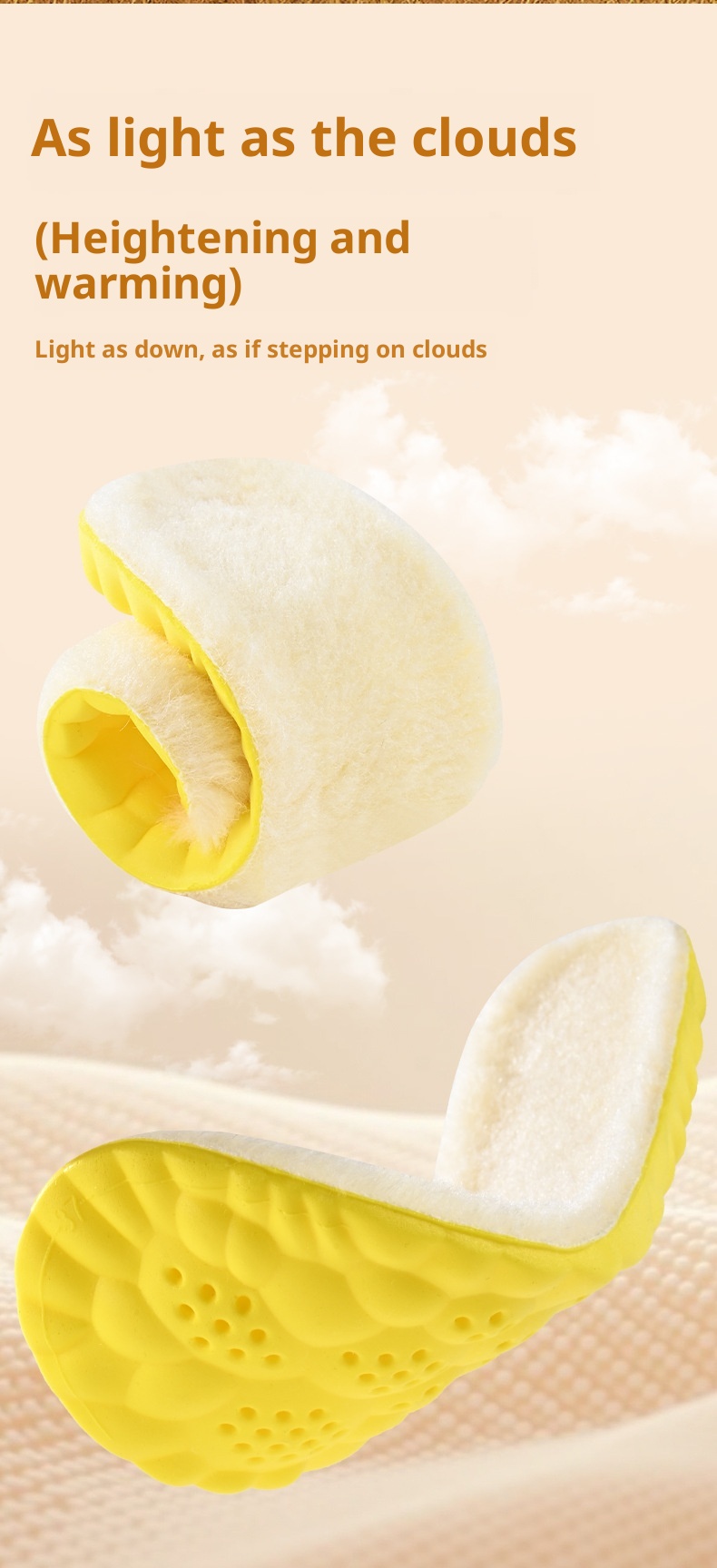 Cloud Winter Warm Height Increasing Insole Wool Fleece Lined